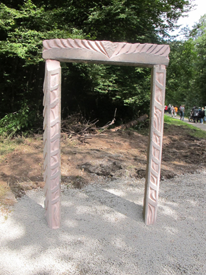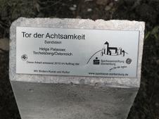 Neben dem ehemaligen Bahnhof in Aschbach am Mühlberg und an dem Weg nach Hartenrod steht das"Tor der Achtsamkeit" von Helga Palasser aus Österreich.