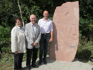 Auf Anregung von Herrn Weihrauch (Mitte) und seiner Frau (links) gestaltete der Künstler und Initiator der Kunstwege Andreas Hintenlang (rechts) eine Station die einen der früheren typischen Berufe in Aschbach darstellt.Herzlichen Dank für die sehr gute Idee und deren Umsetzung im Rahmen des aktuellen Kunstwanderweges der Sparkassenstiftung.